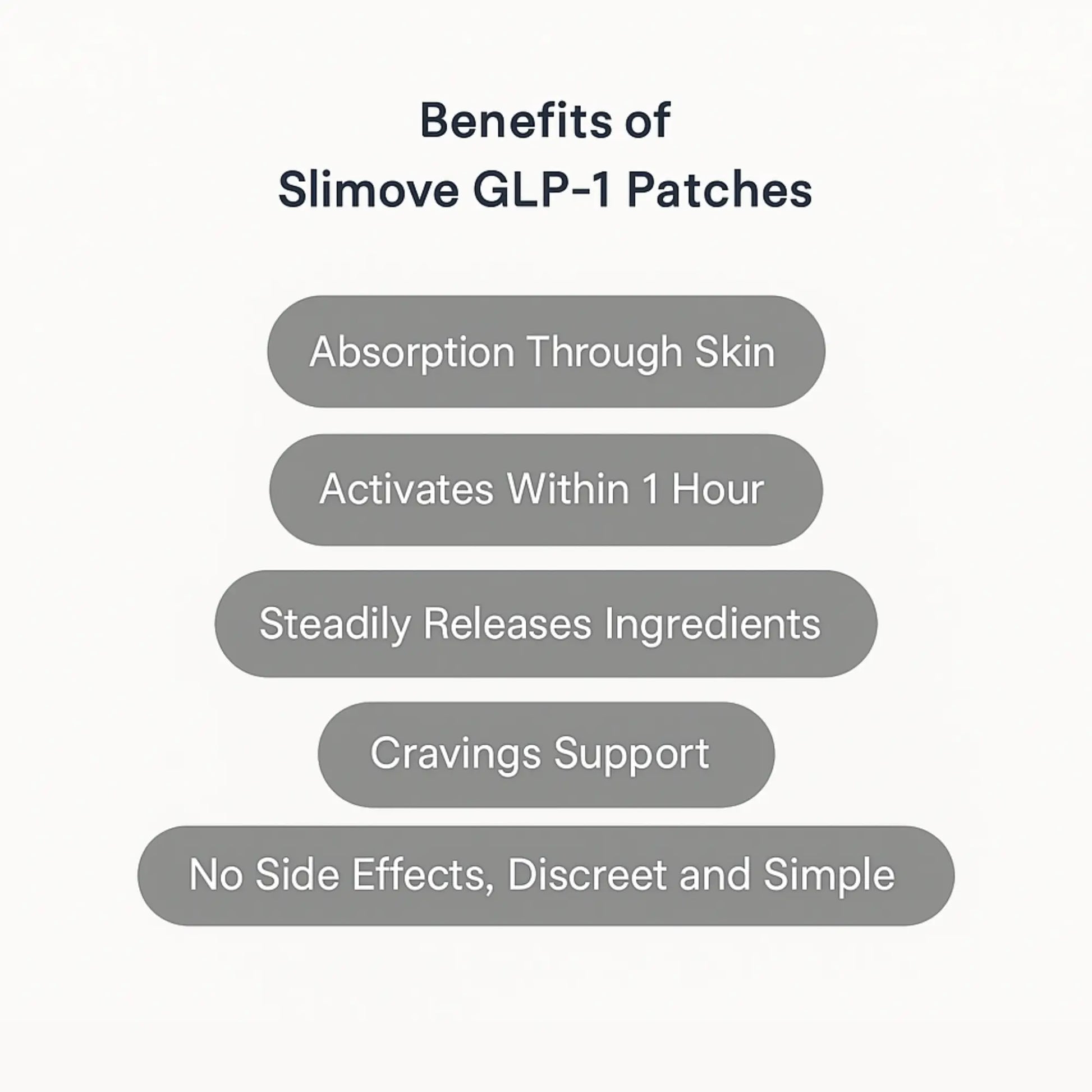 With Slimove GLP-1 Patches, you’ll notice fewer cravings, better control over your appetite, and an effortless shift towards eating less — without feeling deprived.